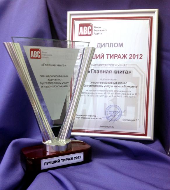 Наш журнал “Главная книга” был признан победителем по динамике роста тиража в номинации “Специализированный журнал по бухгалтерскому учету и налогообложению”!
